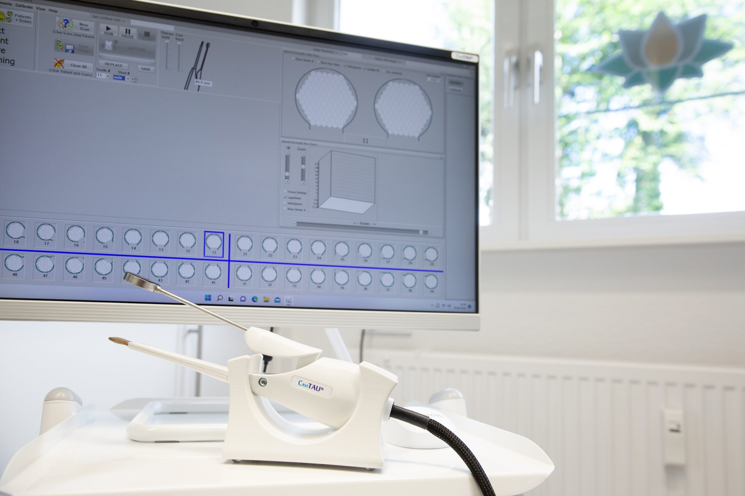 Implantationen sind operative Eingriffe, die sorgfältig vorbereitet werden müssen. Dabei muss zunächst einmal geklärt werden, ob in Ihrem konkreten Fall eine Implantation überhaupt möglich ist. Wir werden Sie nach Allgemeinerkrankungen und zu Ihrer zahnärztlichen Vorgeschichte befragen und ggf. Ihren Hausarzt diesbezüglich kontaktieren. Danach erfolgt eine Untersuchung der Mundhöhle (Zähne, Schleimhaut, Kieferknochen). Zunächst führen wir eine Analyse des Kieferknochens hinsichtlich vorliegende Infektionen und der Konkretisierung der 3-D-Planung des Implantates mit zur Hilfenahme unserer CaviTAU- Ultraschalltechnik und einer DVT-Aufnahme durch.